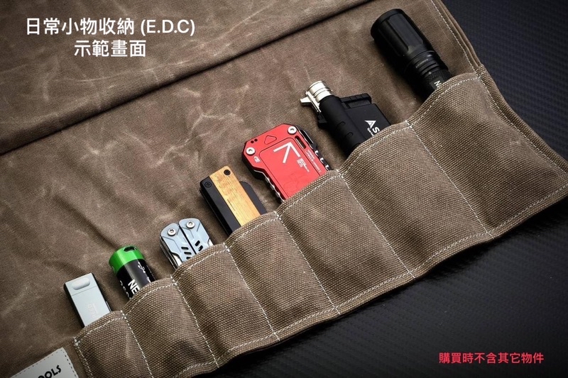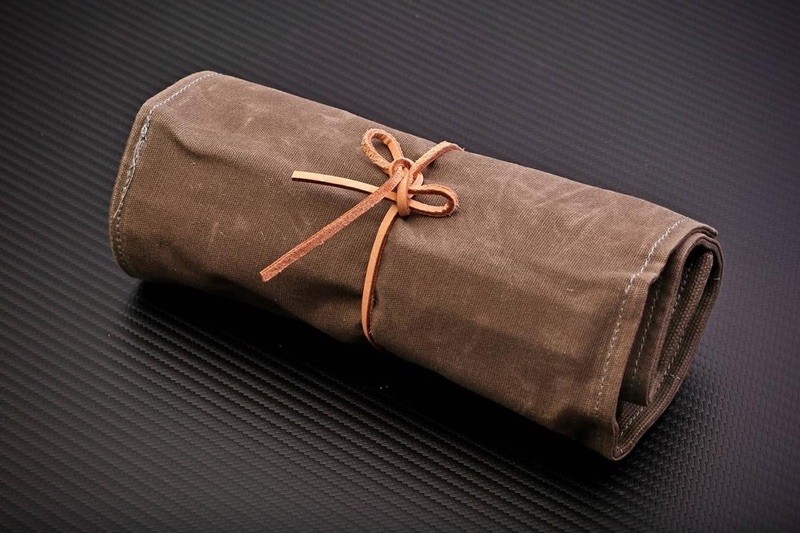 布包收納後可捲成圓柱形,搭配繩索可固定布包。為讓工具收納更完整,以真牛皮繩來達到耐用與長久使用的目的。真牛皮材料也具有不易燃燒的特性